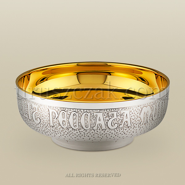 Patena do koncelebry wykonana z mosiądzu, srebrzona i oksydowana na zewnątrz, wewnątrz złocona. Zdobiona inskrypcją w języku łacińskim: "ECCE AGNUS DEI QUI TOLLIT PECCATA MUNDI".